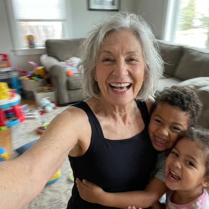 "Best day ever with my grandbabies! 💕 So comfortable I can play on the floor all day without my bra killing me. These tanks are a GAME CHANGER! 74 and finally found something that actually supports me!"